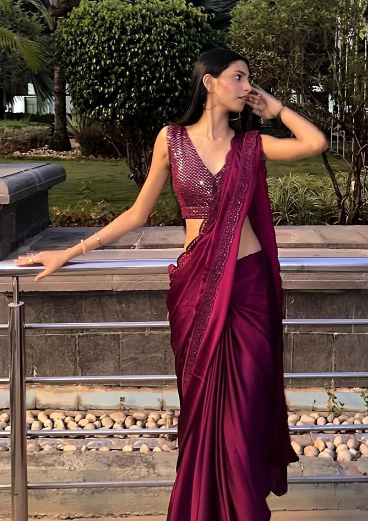 Party Wear Saree for Women that makes it the ultimate wear for parties and functions. It seamlessly blends modern designs with traditional saree draping styles, ensuring women wear it with poise and confidence, making it an ultimate garment for women who want to make an impact with elegance and sophistication.