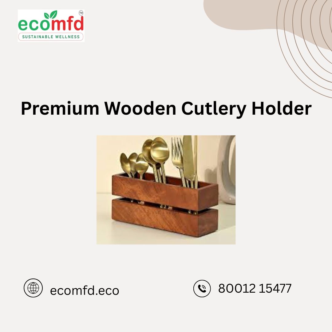 Premium Wooden Cutlery Holder Keep your kitchen organized with the premium wooden cutlery holder from Ecomfd. Made from durable, eco-friendly wood, it neatly stores spoons, forks, and knives while adding style to your dining space. Perfect for daily use, it offers both practicality and elegance for any home.