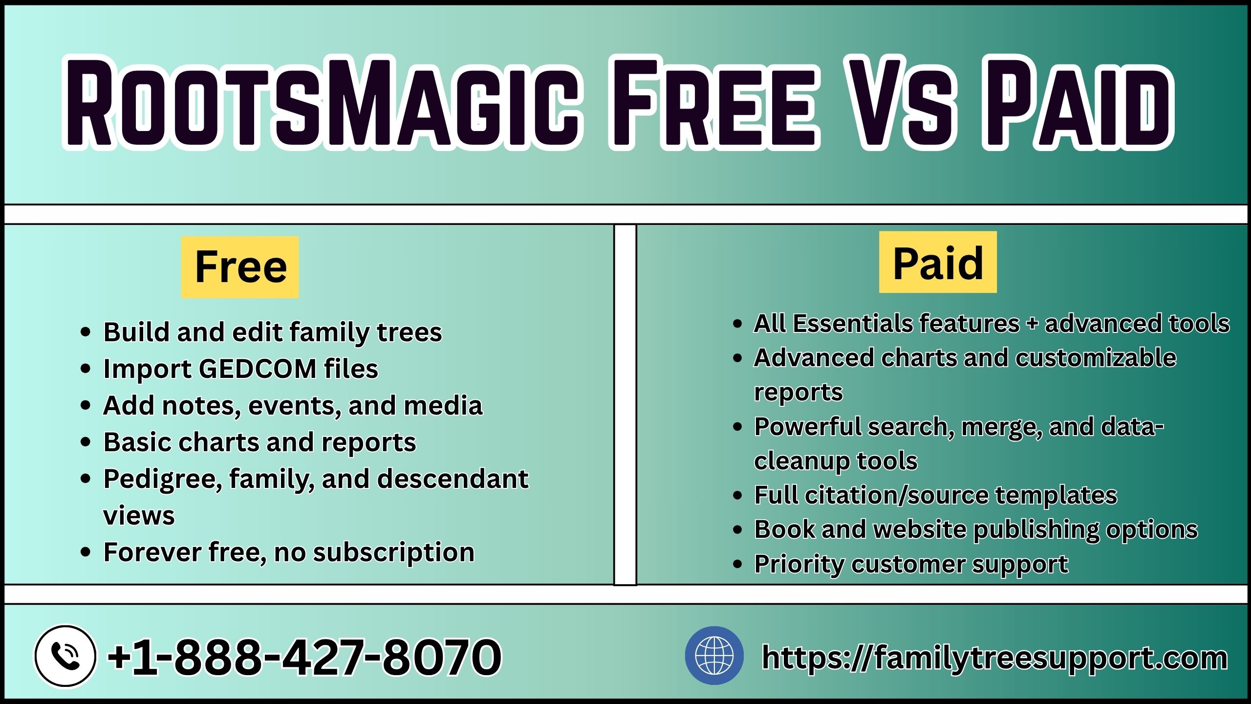 versions to choose the right genealogy software for your needs. Learn the key differences between RootsMagic Essentials (free) and the Full version with advanced tools, WebHints, charts, and publishing options. Build, organize, and share your family tree easily. Call Now: Get expert RootsMagic support and setup assistance at +1-888-427-8070.
