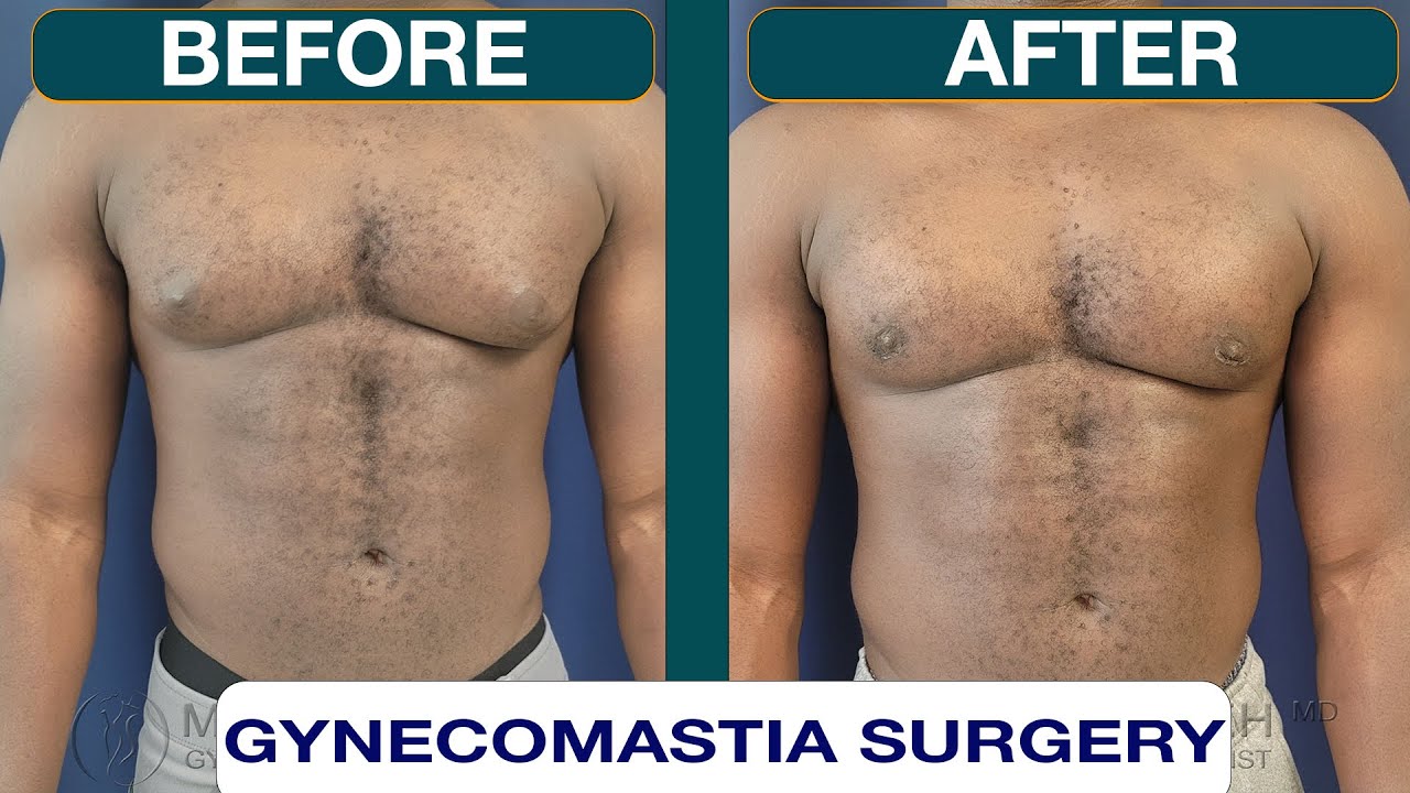 In severe cases or after significant weight loss, excess skin may be removed to achieve a smooth and firm chest appearance.