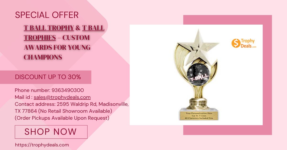 Every big dream begins small, and for many kids, their love for baseball starts with T-ball. It’s often their very first step into organized sports—a chance to learn teamwork, build confidence, and have fun on the field. Whether they’re swinging the bat for the first time or running the bases with excitement, every young player deserves recognition. That’s why TrophyDeals is proud to offer high-quality T ball trophies that capture the joy and achievement of the game. At TrophyDeals, we believe in celebrating milestones, big or small. Our carefully crafted T ball trophies are designed to bring smiles to young athletes and provide a keepsake that parents and kids will cherish for years.