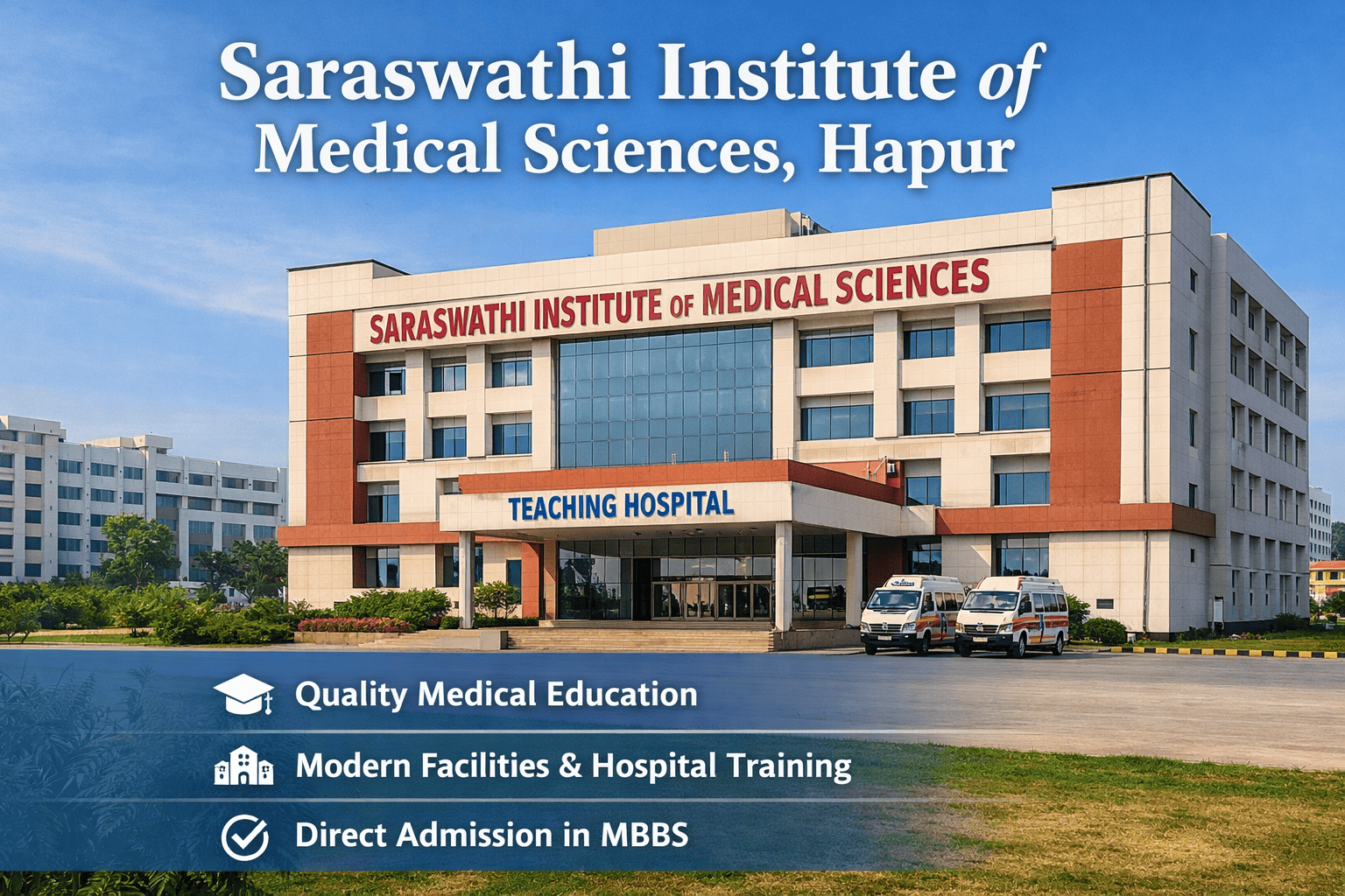 Saraswathi Institute of Medical Sciences, located in Hapur, Uttar Pradesh, is a well-known private medical college that offers quality education and modern clinical training to aspiring doctors. The institute has built a strong reputation for its academic environment, experienced faculty, and well-equipped teaching hospital. Students from different parts of the country consider this institution while exploring opportunities for medical education, including options related to
